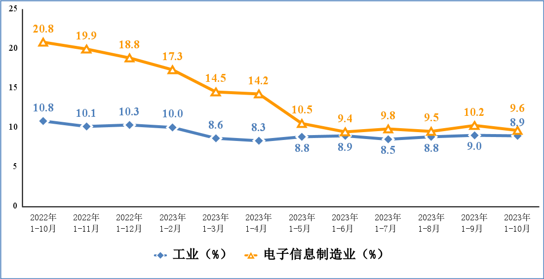 1~10月份,電子信息制造業固定資產投資同比增長9.6%,比同期工業投資增速高0.7個百分點,但比高技術制造業投資增速低1.7個百分點。